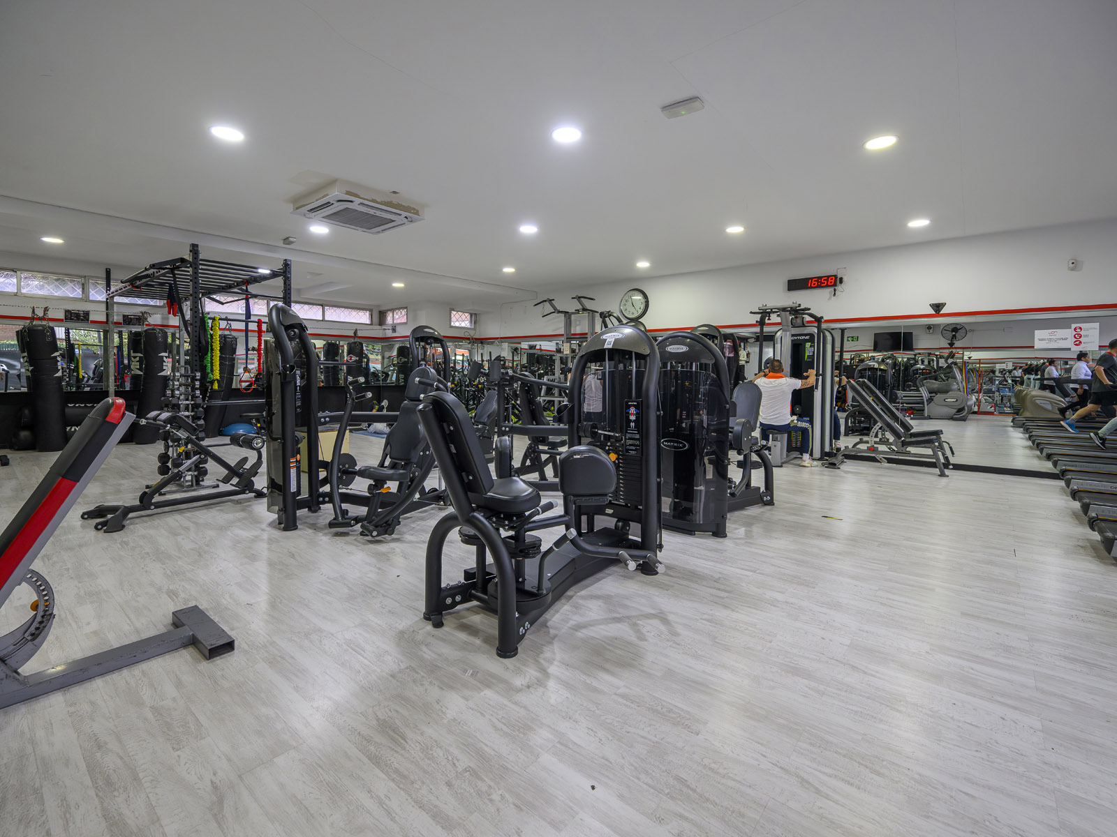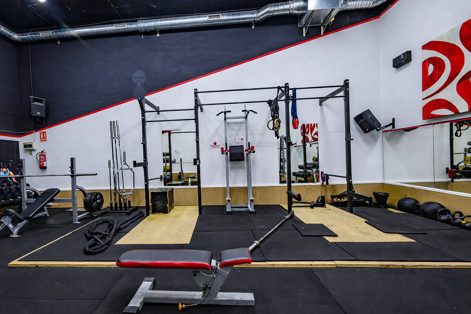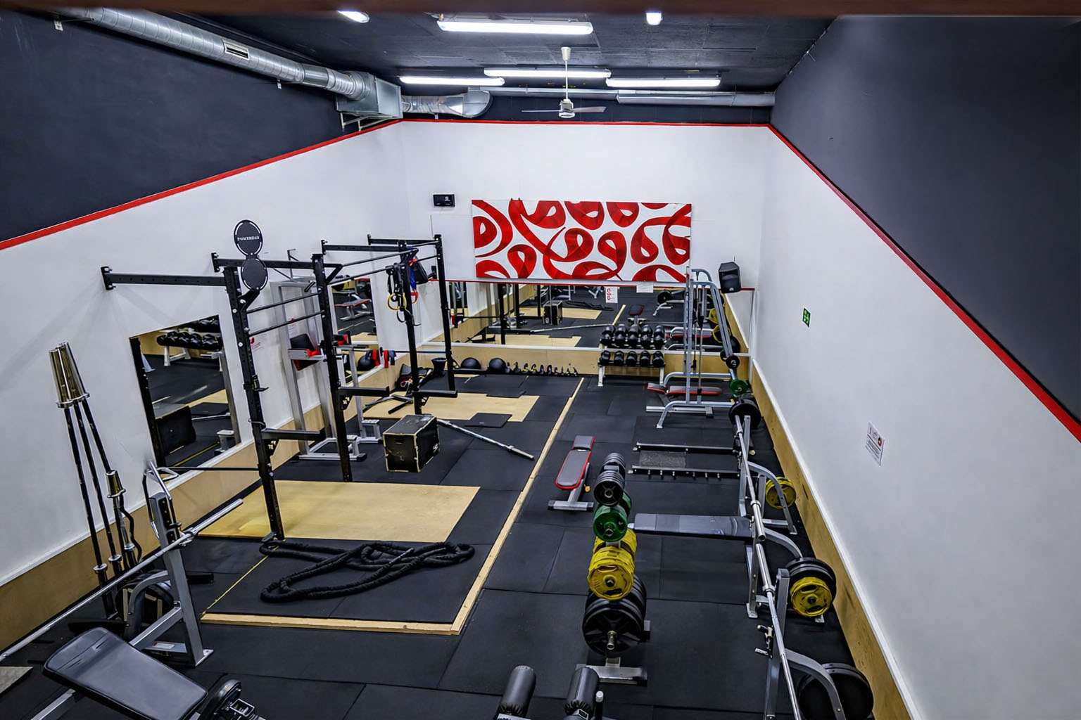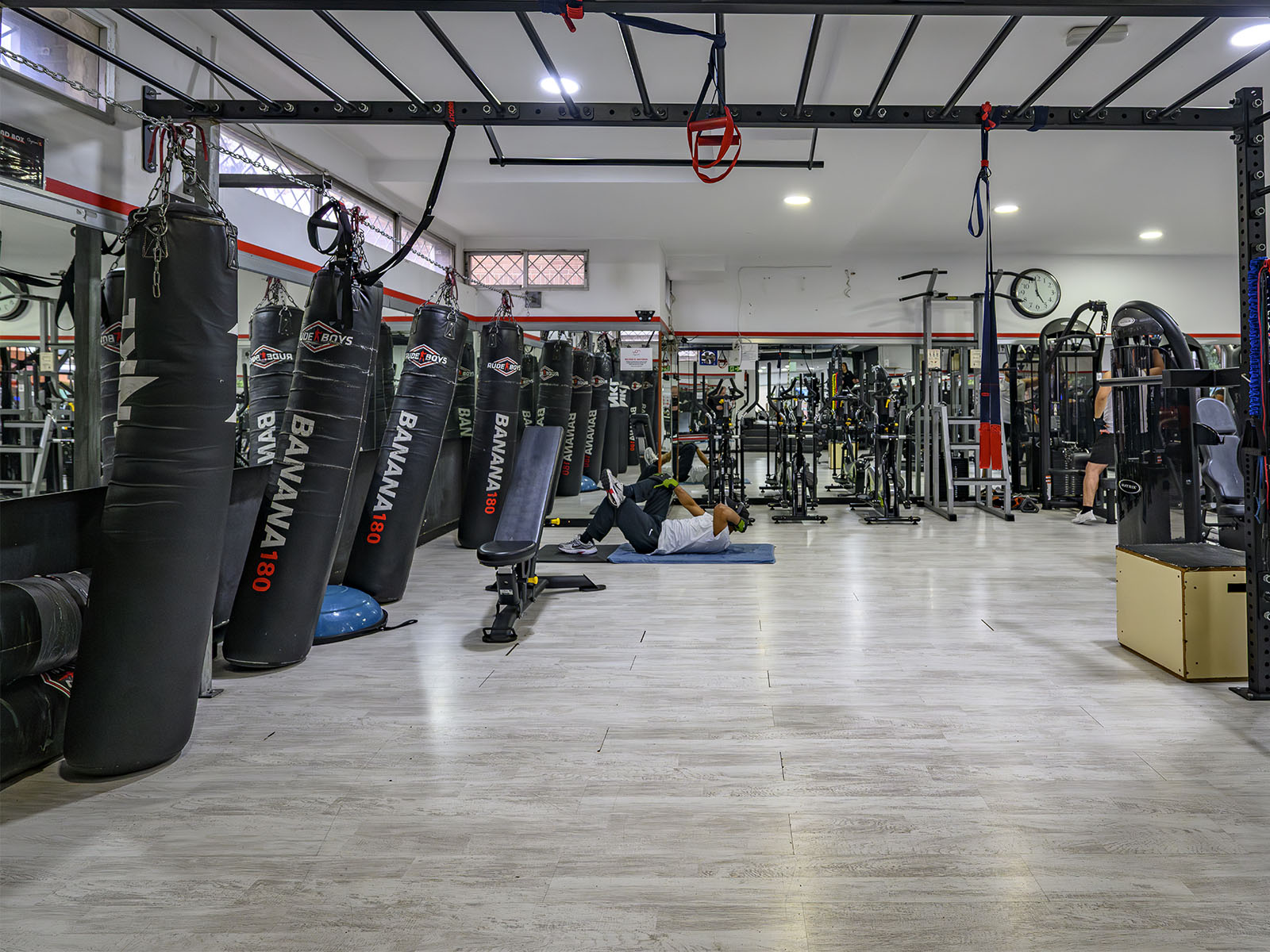 Peso libre, Máquinas guiadas, Zona Boxing, Sala de clases colectivas, Máquinas cardiovasculares, Taquillas de uso diario